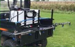 - 4-метровая 3-секционная складная стрела с ломающимися спинками, высота регулируется, линии распыления из нержавеющей стали с одной турелью корпуса форсунок и форсунки Bubble Jet с уменьшенным сносом