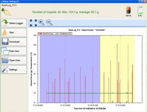 - BeetLog записывает удары при движении с настоящими клубнями свеклы во время уборки и обработки, а также определяет местонахождение поврежденных и вызывающих ушибы частей техники.