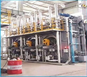 Печь гомогенизации нагревает деформируемые алюминиевые цилиндрические слитки примерно до 560-590 °C в соответствии с требованиями процесса. После определенного периода изоляции слитки быстро охлаждаются в камере охлаждения для достижения желаемого эффекта термообработки. Трехмерное транспортное средство отвечает за транспортировку алюминиевых слитков, в то время как платформа для хранения материалов служит для загрузки и выгрузки цилиндров.