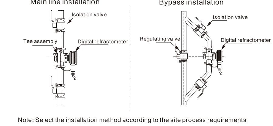 Рефрактометр DR-2000 можно подключить к процессу как в основную линию, так и по байпасной схеме.